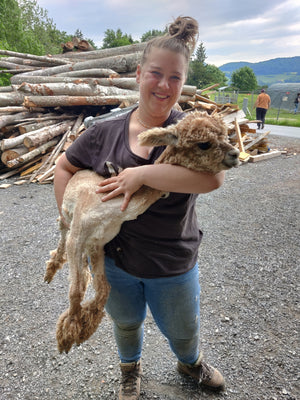Daniel ist das Mastermind hinter unserer Alpakafarm, man sieht es ihm aufgrund seiner bodenständigen Art auf den ersten Blick nicht an, aber durch zahlreiche Seminare und Fortbildungen zum Thema Alpaka, Zucht, Genetik, Faserverarbeitung, Krankheiten ist er ein wahrer Tausendsassa wenns um Alpakas geht. Er steckt immer voller neuer Ideen und hat das Herz am rechten Fleck, um alles rund um die Alpakas noch besser und einfacher zu machen. In seiner Freizeit findet man ihn oft am Wasser – beim Fischen, wo er ebenfalls die Ruhe und Inspiration für neue Projekte findet. Von April bis Juni ist er selten zuhause anzutreffen, da streift er mit seiner Schermaschine durch Österreich und Deutschland wo er bis zu 1000 Alpakas von deren Wolle befreit.