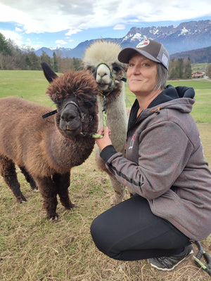 Regina ist das Herzstück unserer Alpakawanderungen und verbringt viel Zeit mit den Tieren. Sie ist nicht nur unermüdlich hilfsbereit, sondern auch eine tolle Mutter von Zwillingen, die stets ein Lächeln auf den Lippen hat. Ihre gute Laune steckt an, und bei jedem Besuch fühlt man sich sofort willkommen – bei den Alpakas und auch bei Regina!