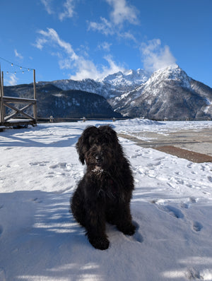 Kiwi ist erst seit Nov. 2024 bei uns und hat sich toll eingelebt. Sie macht die Wälder rund um unseren Hof unsicher. Von der Terrasse aus beobachtet sie das Geschehen am Hof.